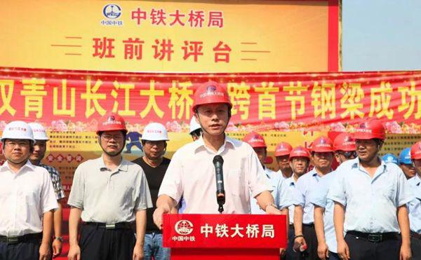 2018年8月8日上午,武漢青山長江大橋主跨鋼梁首架儀式在武昌岸現場舉行。中鐵大橋局副總經理張春新出席活動并致詞,武漢交投總經理陳順平出席儀式并宣布大橋主跨首節鋼梁架設成功,中鐵大橋院副總經理莊勇出席了活動。